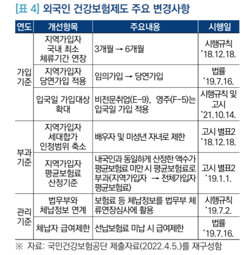 한국 거주 기간 동안 상당한 보험료를 부담하지만, 실제 의료 이용은 한국인보다 적은 편입니다.