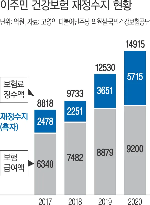 중국인 건강보험 가입자는 보험료를 납부한 금액이 받은 혜택보다 훨씬 많아 흑자인 것으로 나타났습니다.